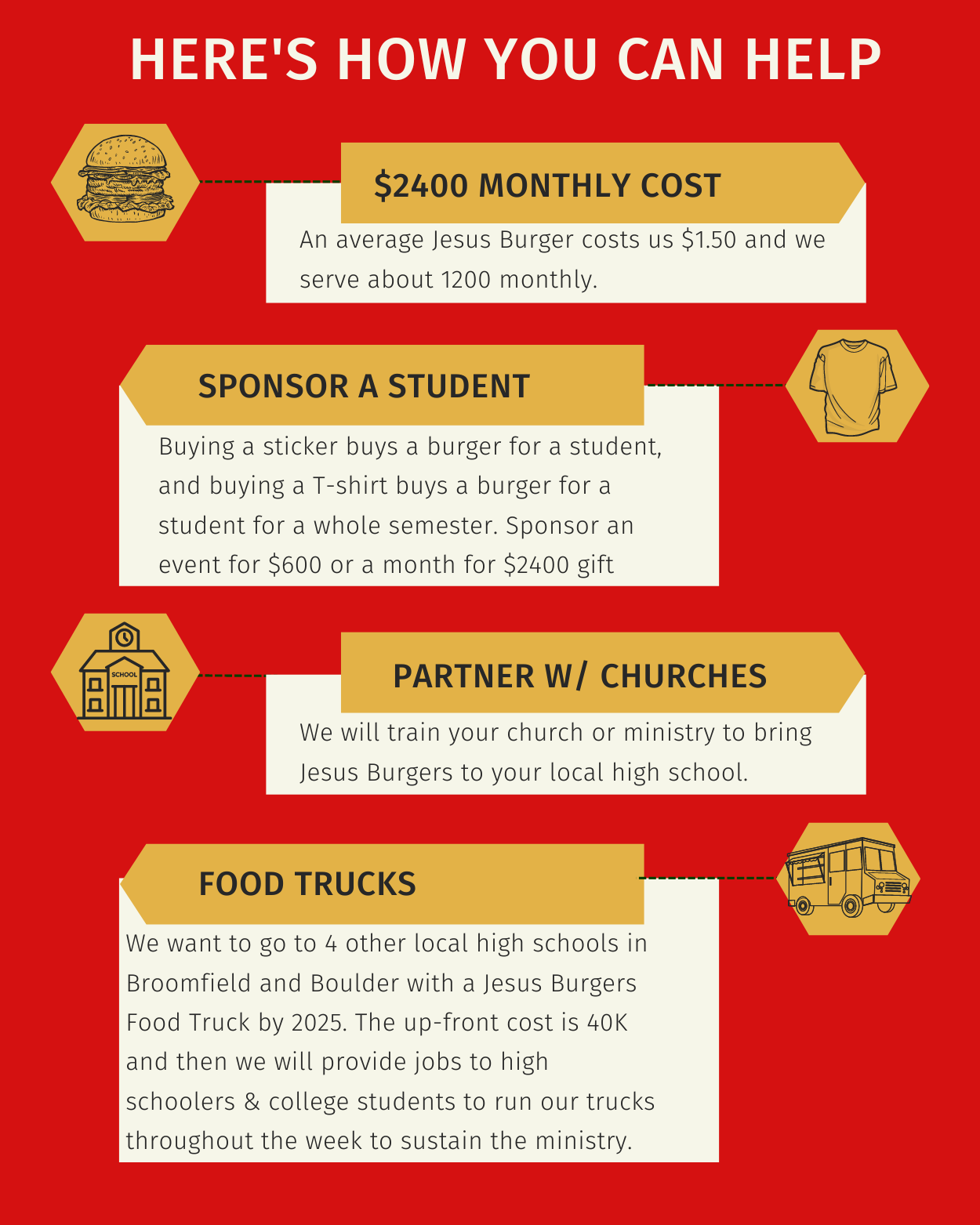 We have the opportunity to feed hundreds of local high school students while also sharing the love of Jesus here in Broomfield, CO.